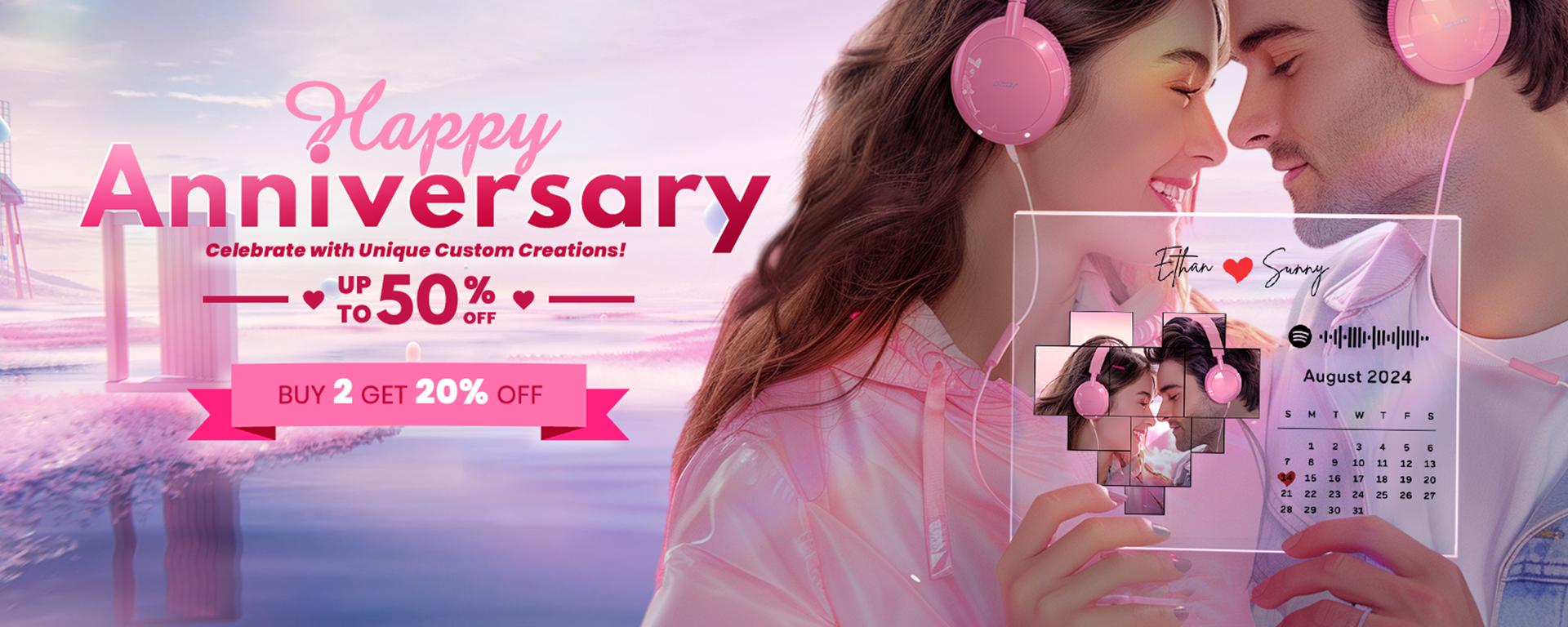 Personalized Spotify Calendar Keychain Custom Picture & Music Song Code Couples Photo Keyring Gifts for Valentine's Day