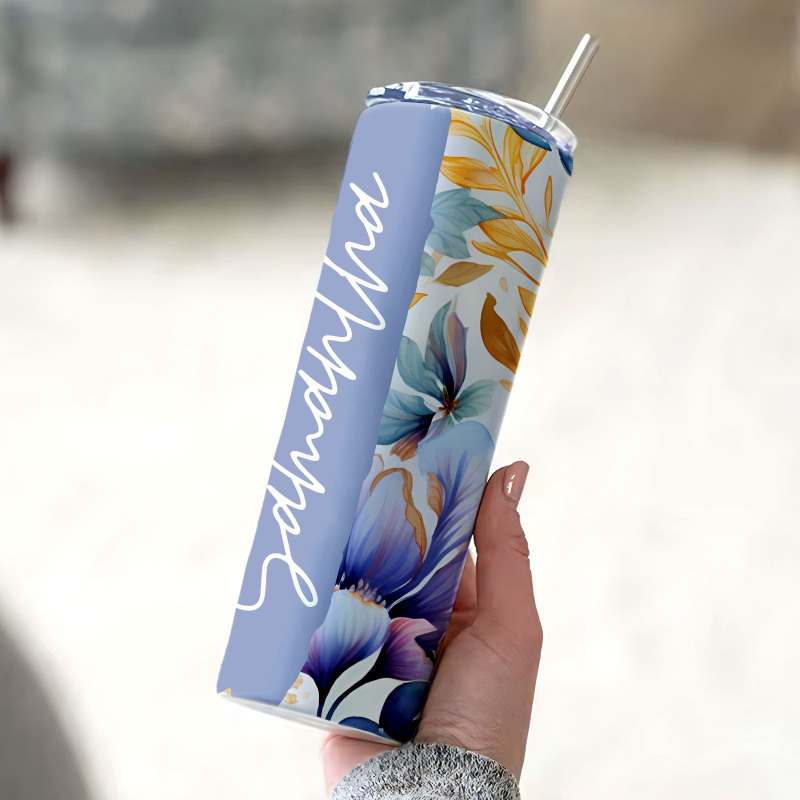 Add Your Own Name Floral Tumbler 20oz Skinny Flower Cup