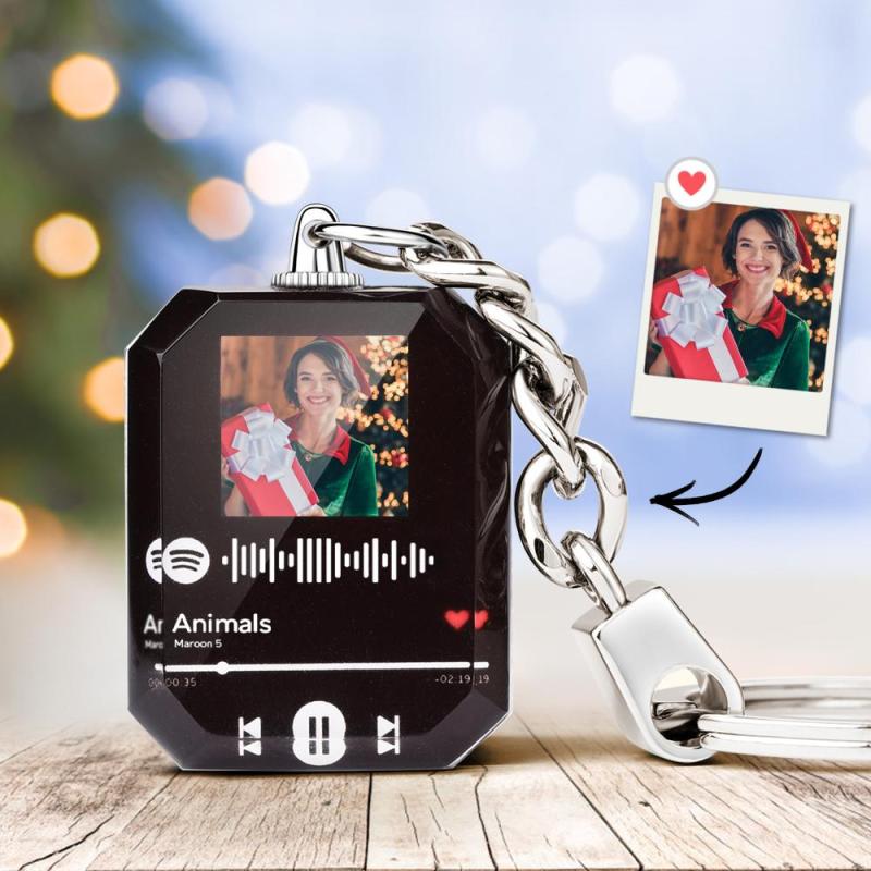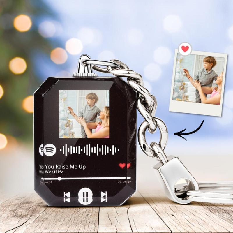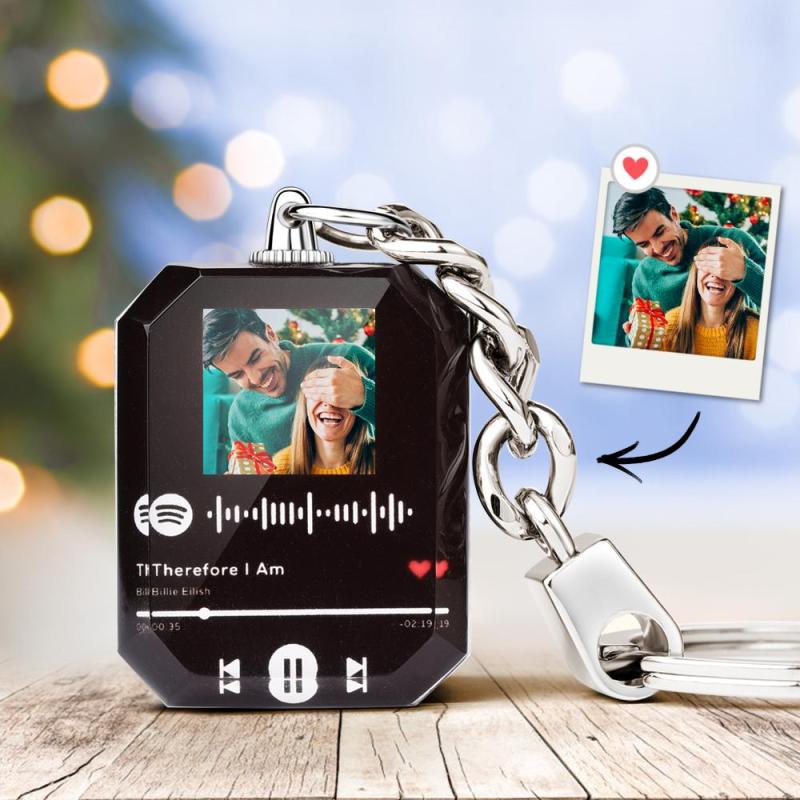 Upload a romantic photo to design a spotify music keychain. It is a unique gift for music lover.