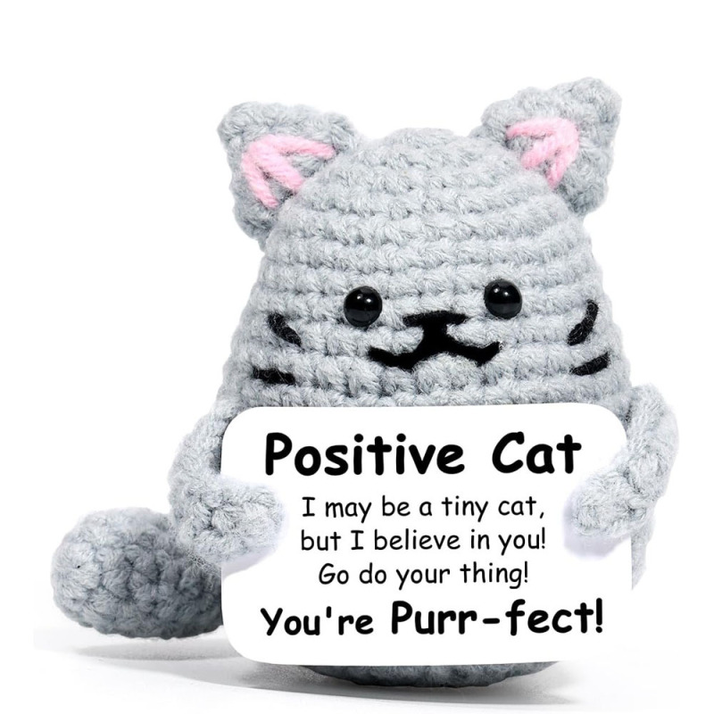 Looking for a way to brighten someone's day (or your own)? This adorable crochet cat delivers a sweet reminder with its paws-itively uplifting message: I may be a tiny cat, but I believe in you. Go do your thing! You're purr-fect! Soft, handmade, and full of heart, this little cat is the purr-fect cheerleader in tough times. Size: 7.7cmx6.6cm