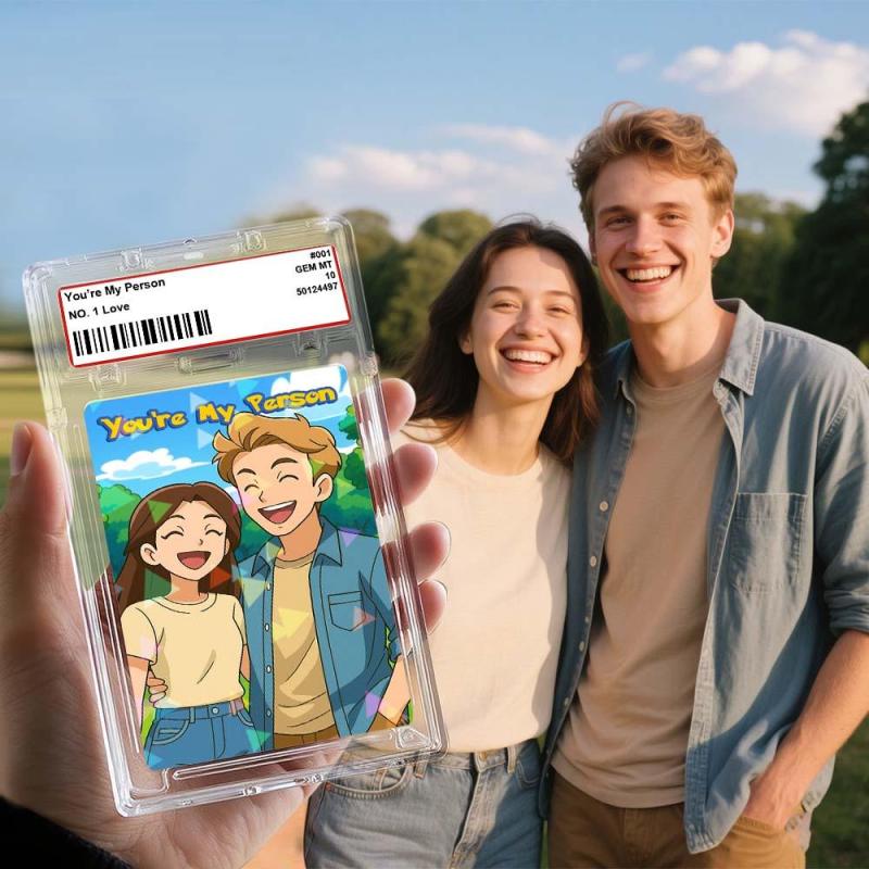Bring your favorite photo to life in a playful cartoon style. This personalized couple card is sealed like a collector's item and includes your photo and a heartfelt message. Ideal for anniversaries, Valentine's Day, or surprise gifts.