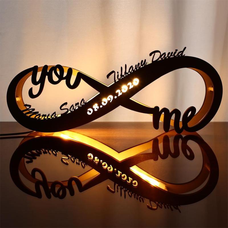 This lamp is made of wood and decorated with you and me, which means lovers are together forever. Being an unusual and cute piece of home decor this lamp creates a romantic and intimate atmosphere. Two names on the lamp make it personalized, and a gift like this shows a personal touch and is much appreciated. The item is eco-friendly and absolutely safe for children.Birthdaygifts forhim, wife, husband, and friends