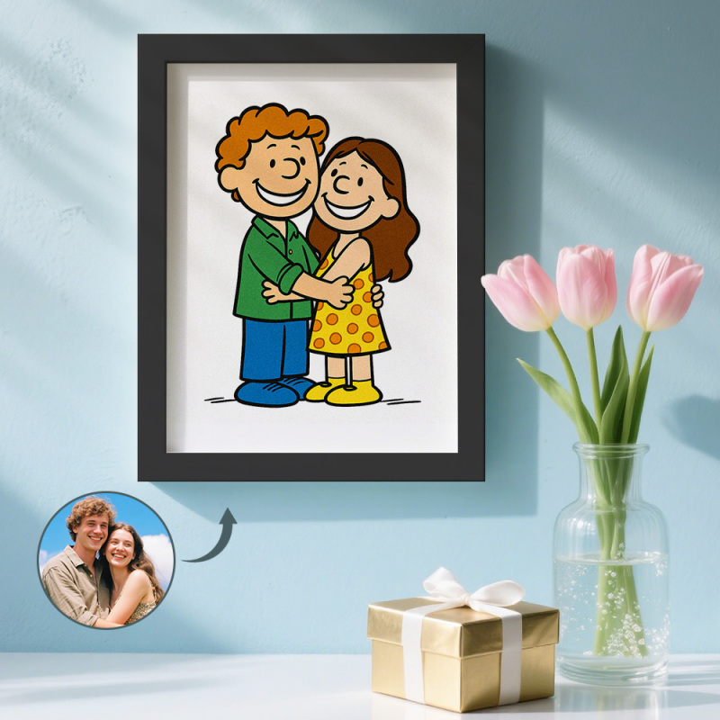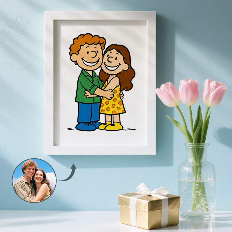Step into the charming world of Peanuts with a personalized cartoon portrait! This heartwarming artwork turns you and your loved ones into adorable Peanuts-style characters with simple lines, warm vibes, and timeless charm. 💛