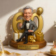 Upload his face and we'll create a playful cartoon version - dressed in a sleek black suit, raising a champagne glass while confidently sitting on the golden number 60.