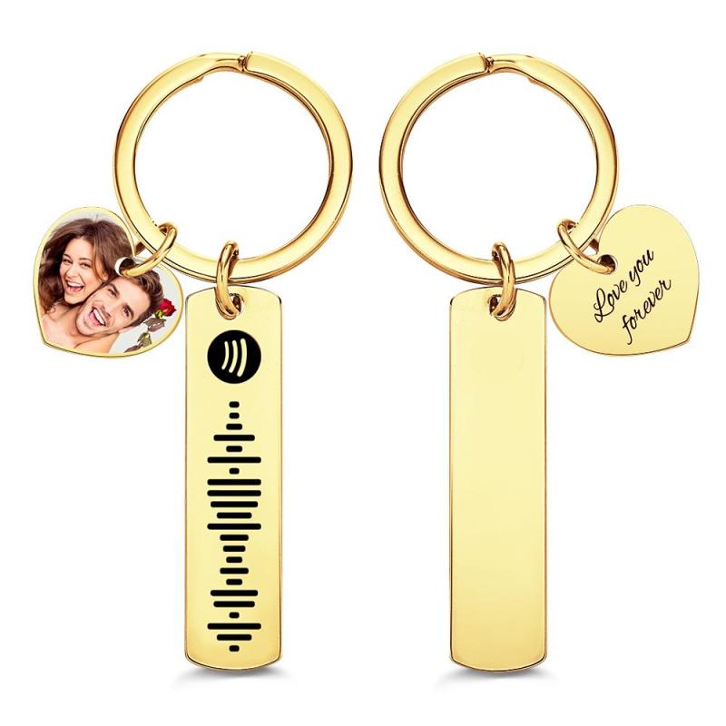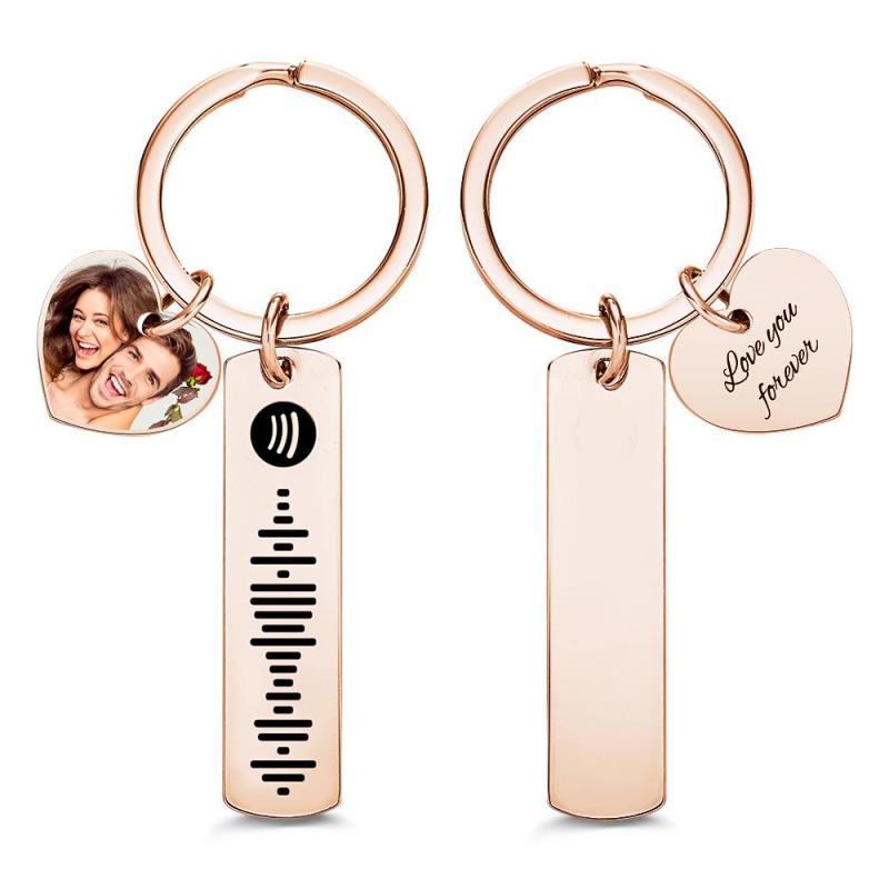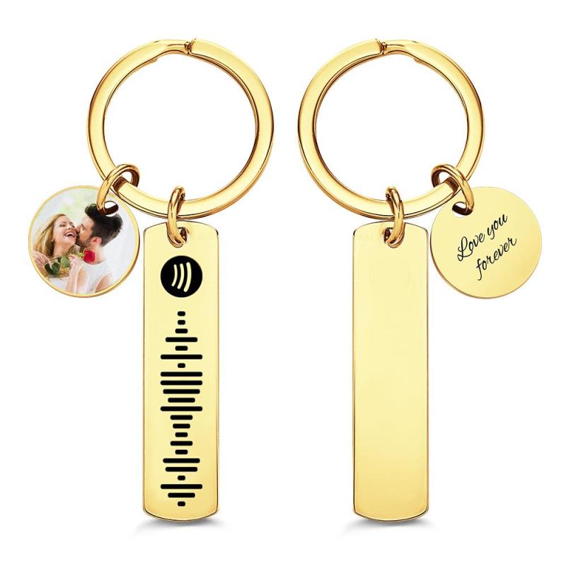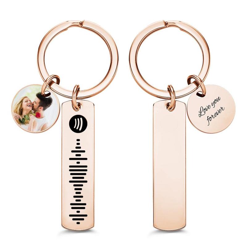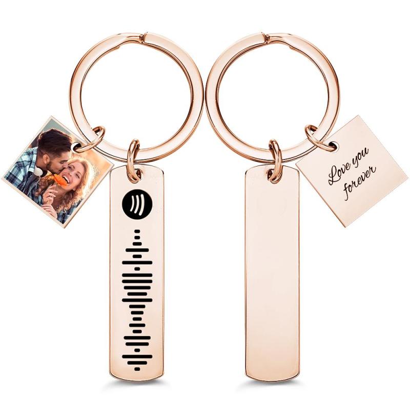 This unique keychain is the best perfect gift for him/her at Christmas. Custom the Spotify code keychain, choose any song title, artist name, and favorite photos you want, all can be imprinted on the plaque, and you can generate a unique Spotify code. Please note that the plaque itself does not emit music. You have to scan the code on the Spotify app, after scanning the code on Spotify, your song will start playing immediately.