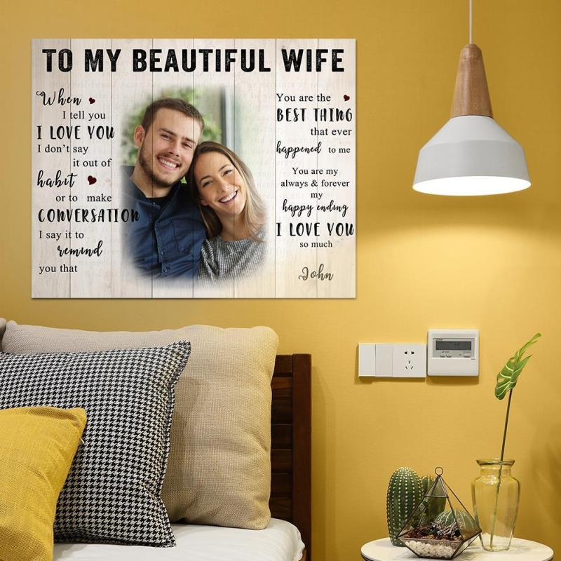 Home / Custom Photo Wall Decor Painting Canvas With Text Birthday Gift - To My Beautiful Wife