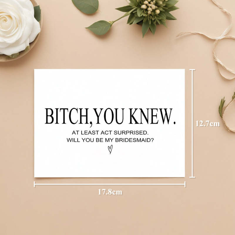 Pop the question to your ladies with this charming "Will You Be My Bridesmaid" card. Perfect for bridesmaid proposals, this card is a sweet way to ask your friends to stand by your side on your big day. Show your fun-loving side with this playful and quirky card!