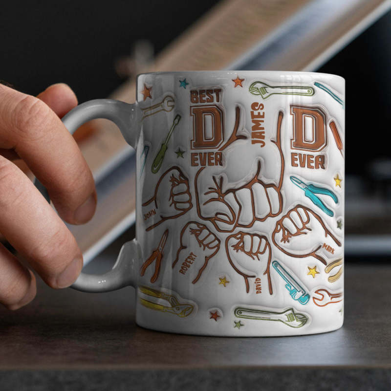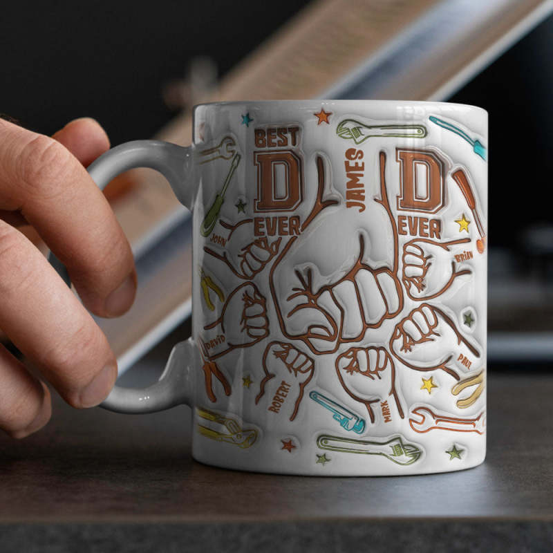 Home / Gifts for Dad Personalized Names Custom 1-6 Kids 3D Inflated Effect Printed Mug Happy Father's Day