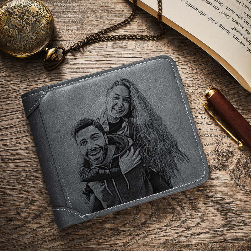 Home / Men's Custom Photo Engraved Wallet Grey Leather Personalized Wallets