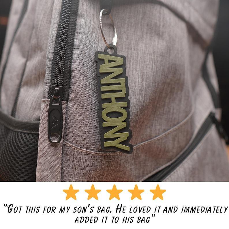 Stand out amongst the could with our amazing personalized dual color back pack tag! Great for Backpacks, lunch bags, instrument cases, water bottles, and so much more!
