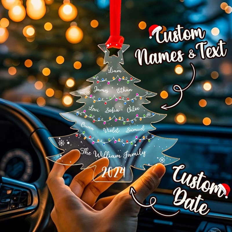 Enhance your holiday decor with our personalized christmas tree ornament. Made of durable acrylic, this ornament features your family's names and will add a personalized touch to your Christmas tree. Perfect for gifts, this ornament will be treasured for years to come.