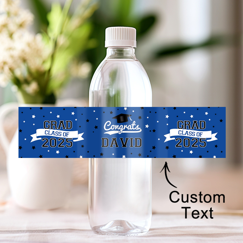 [CUSTOMIZATION]: We offer 16 different color options for you to match your party theme. Furthermore, these labels can be personalized with the name and graduation year, which makes each label unique and adds a personal touch to the celebration.