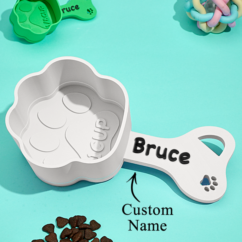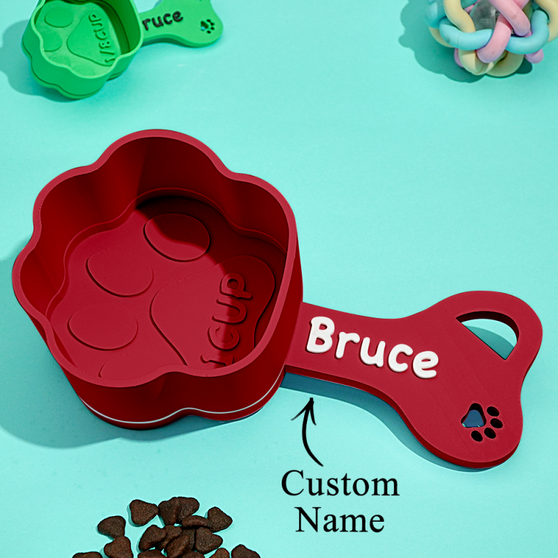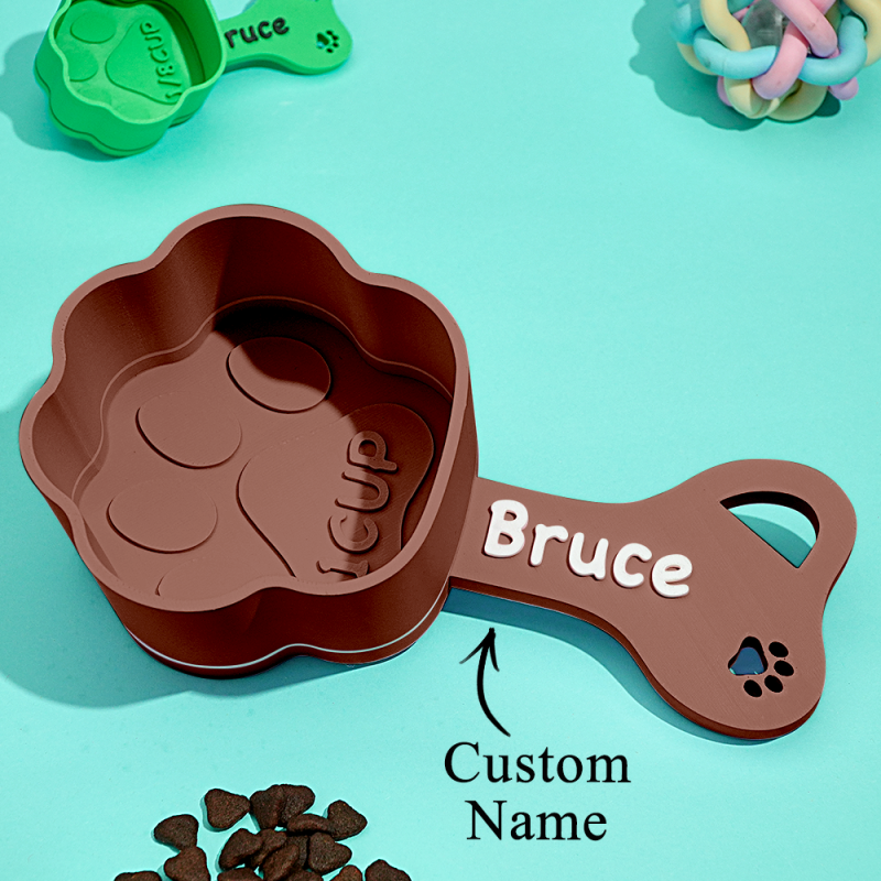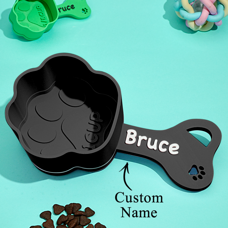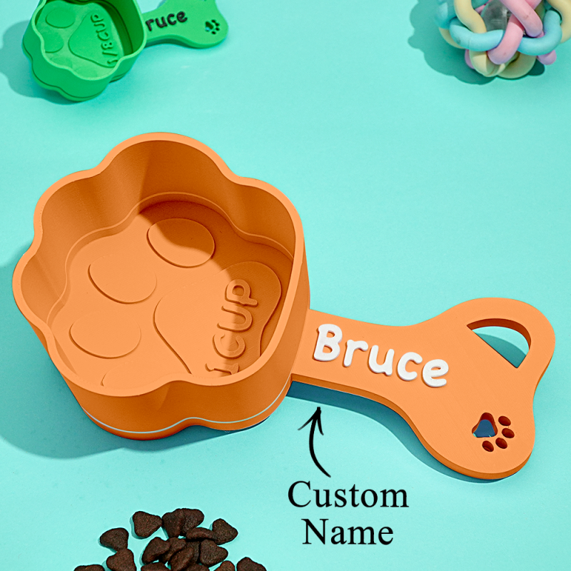 Introducing our Personalized Dog Food Scoop, a custom dog scooper designed to make feeding your furry friend easier and more personalized than ever before. This scooper is 3D printed with high-quality materials and is available in multiple size & color options to match your pet's personality.