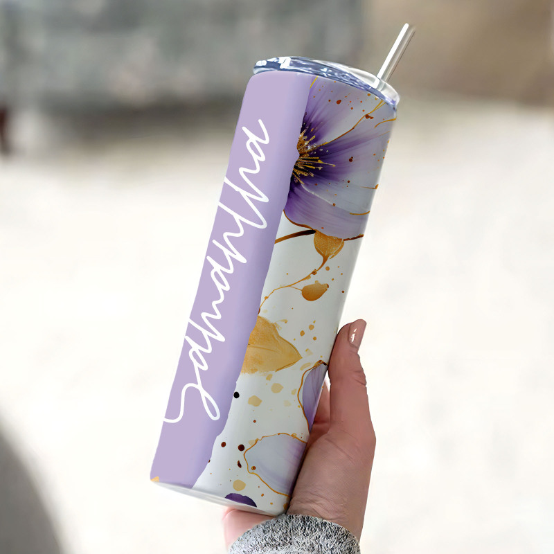 Personalized Floral Name Tumbler Skinny Seamless Gift for Her