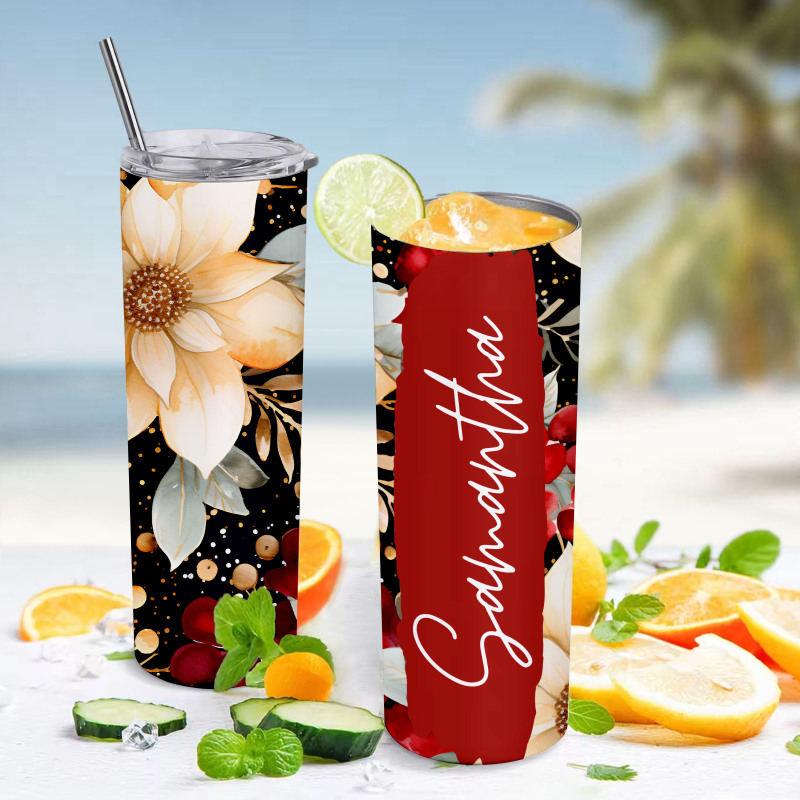 Personalized Floral Tumbler Wildflowers Add Your Own Text Summer Gift