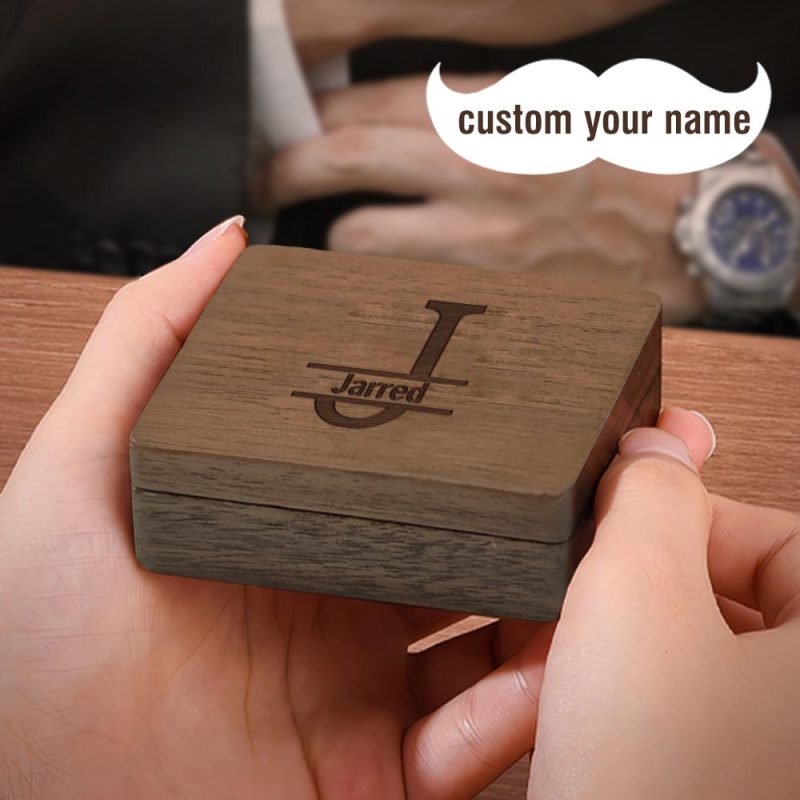 Personalized Name Cufflinks Set With Wooden Box Gifts For Him