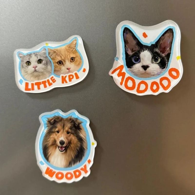 Celebrate your furry friends with our Custom Pet Photo Fridge Magnets, specially designed to showcase your beloved pets. These high-quality acrylic magnets can be personalized with any pet image, making them a perfect keepsake or thoughtful gift for pet lovers. Durable and vibrant, they attach securely to any magnetic surface, from refrigerators to office boards. Whether you're immortalizing a favorite moment or gifting a cherished memory, our custom pet photo magnets offer a stylish and personal way to keep your pets close to heart. Ideal for birthdays, holidays, or just because!