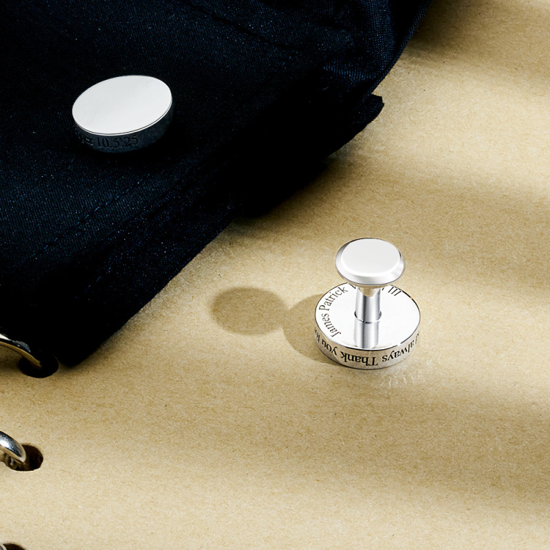 A classic stud cufflink with solid stem and polished mirror finish. The luxury cufflinks can be left plain, engraved on the circumference or be subtly personalised on the underside with any message of your choice.