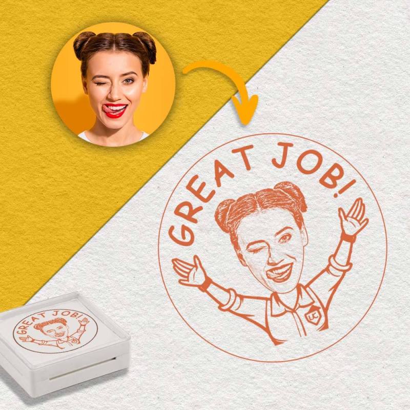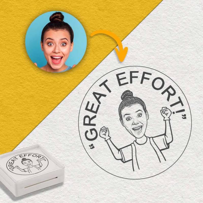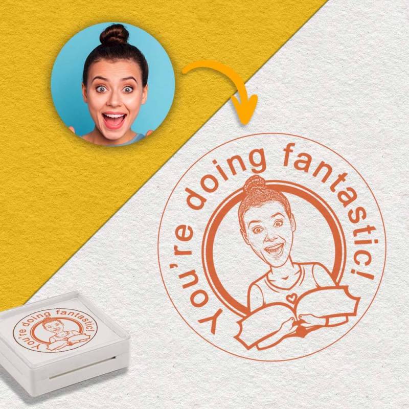This is an interesting teacher stamp that sets itself apart from other teacher stamps. Not only can it be customized in design, but it also allows for the inclusion of a portrait. Combining your portrait with my design will create a unique work of art. You have the option to personalize both the portrait and the text, making it the perfect personalized gift for a teacher.