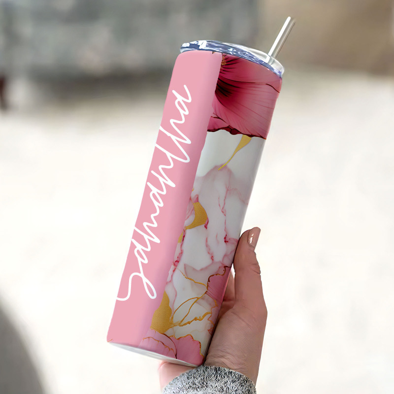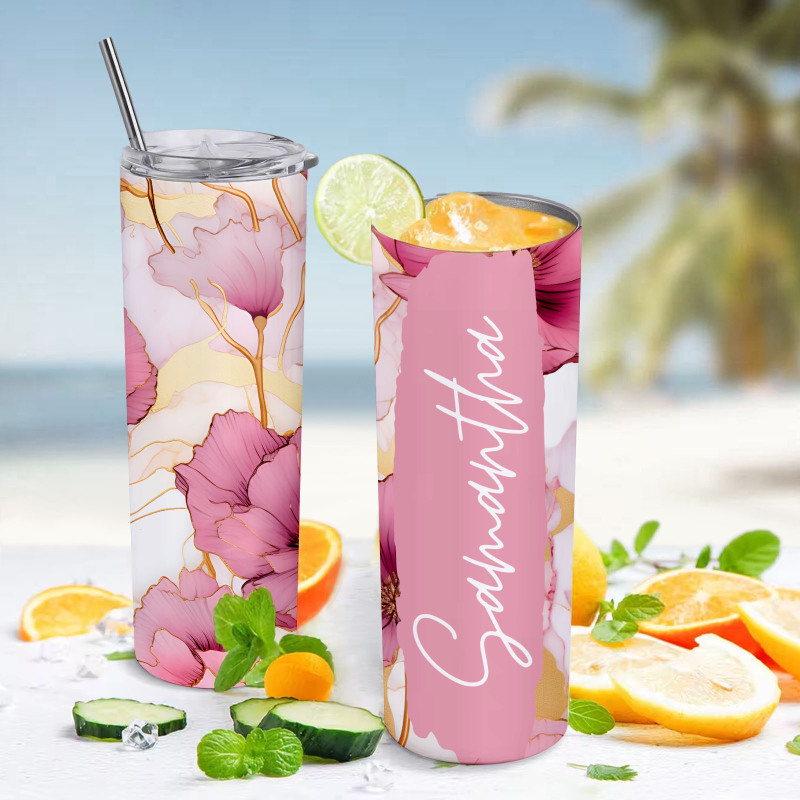 Personalized Tumbler Floral Name Skinny Seamless Gift for Her