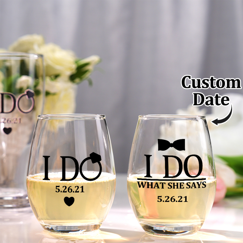 What a cute and funny gift set for the wedding couple! You can choose from a wine glass and beer glass, 2 wine glasses or 2 beer glasses or 1 beer glass or 1 wine glass at checkout.