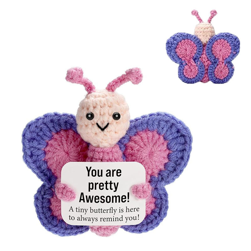 Positive Crochet Butterfly for Women, Mini Handmade Emotional Support Plush for Friends, Coworkers Boss Girls Teachers on Birthday Christmas Valentines Card Bracelet Blanket Basket
