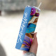 This travel mug is made with a sublimation process and has a smooth printed surface that won't peel or fade. It holds 20 ounces of your favorite drink; has a plastic lid and comes with a reusable straw.