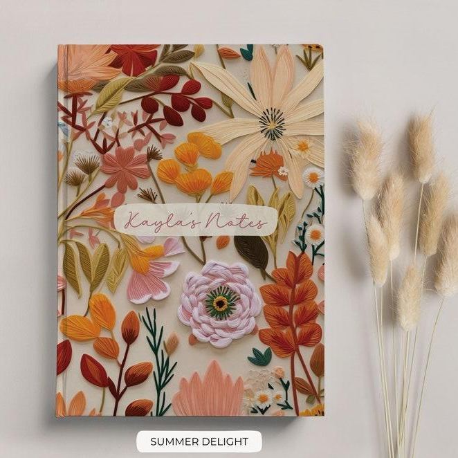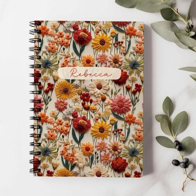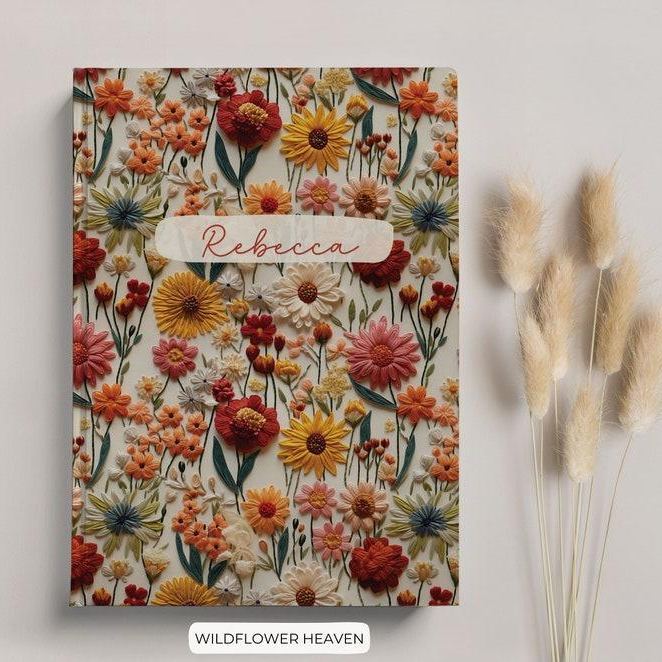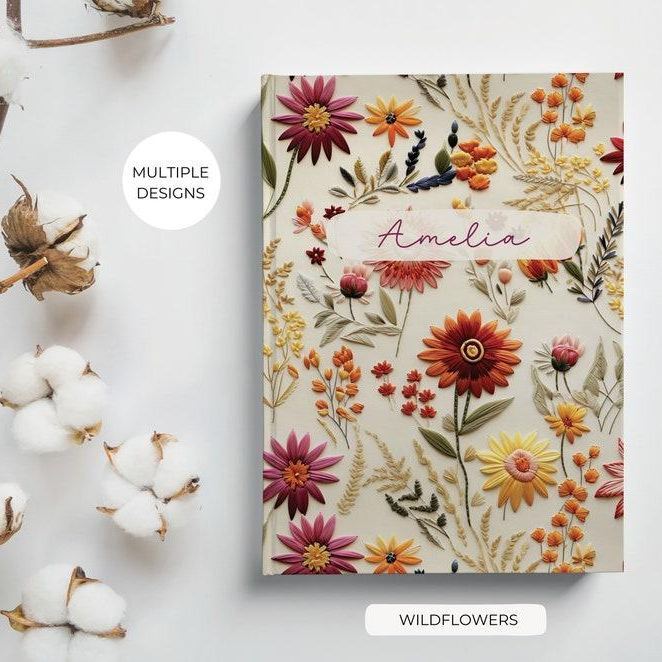 Hardcover Personalized Journal, Wildflower Customized Notebook for Women